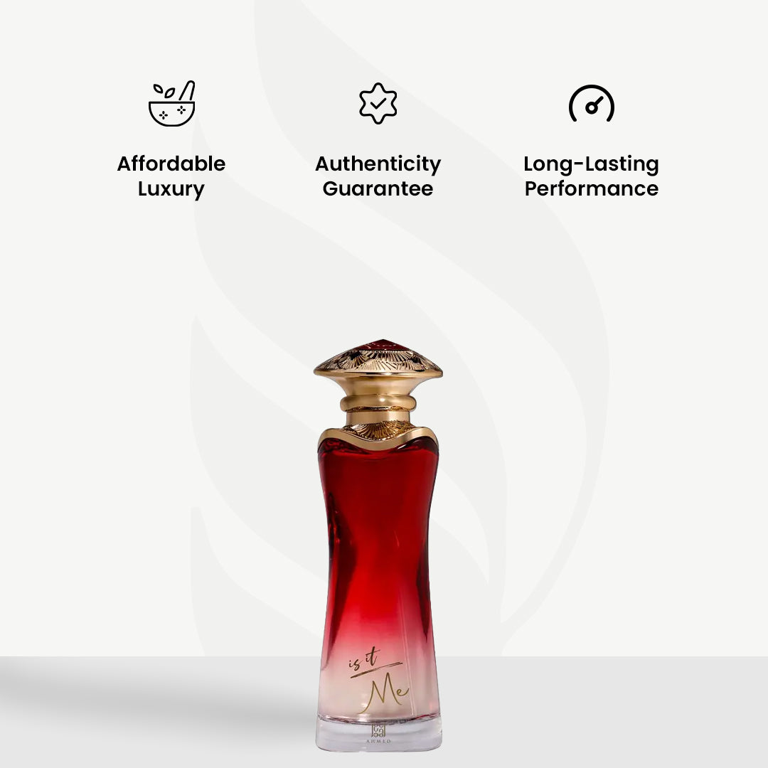 Is It Me by Ahmed Al Maghribi is a playful twist on the modern gourmand, where flirtatious sweetness meets refined depth. The scent opens with a luminous blend of saffron, delicate jasmine, and the juicy brightness of candied orange—immediately intriguing and uplifting.