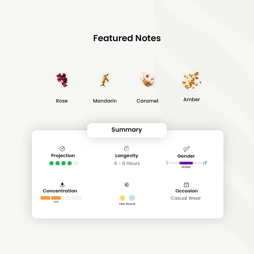 Amber • Sweet • Woody A golden sweetness wrapped in timeless elegance.