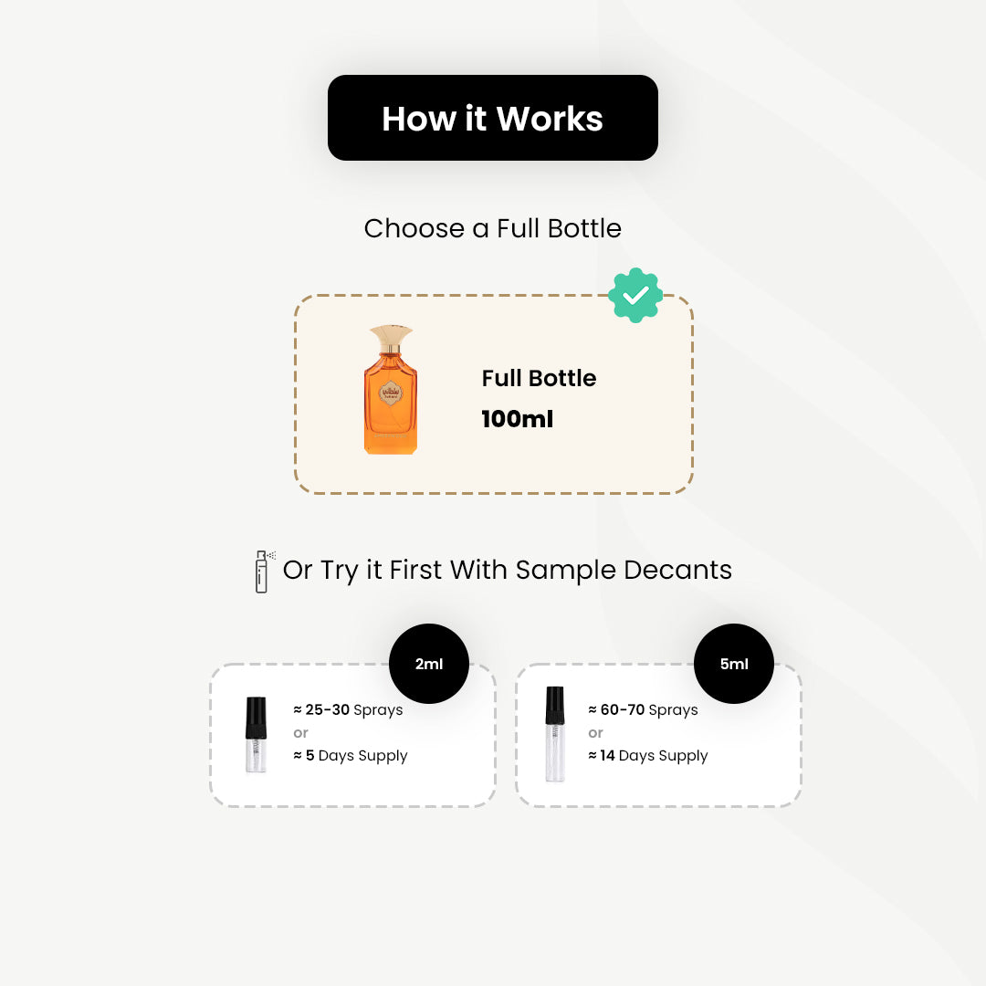 Sultani Amberwood is the scent of quiet power and refined sweetness — soft yet unforgettable, like an heirloom passed down through generations. It speaks of grace, confidence, and understated luxury.