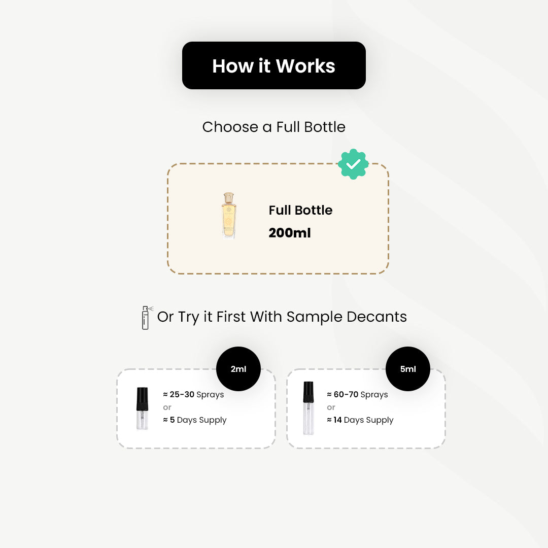 As fragrance lovers we know that we want to get the most out of each sample, starting from the 2ml samples which will give you on average ~5 Wears, 5ml ~12 Wears and 10ml ~24 Wears, those numbers are taking into account around 5 sprays per wear.
