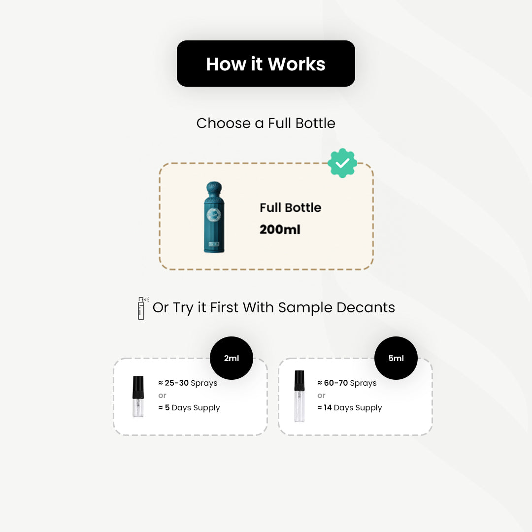 As fragrance lovers we know that we want to get the most out of each sample, starting from the 2ml samples which will give you on average ~5 Wears, 5ml ~12 Wears and 10ml ~24 Wears, those numbers are taking into account around 5 sprays per wear.