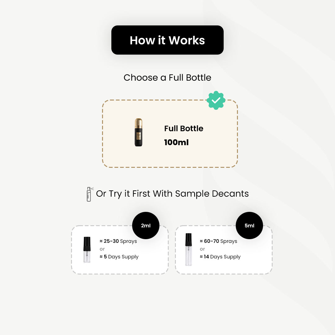 As fragrance lovers we know that we want to get the most out of each sample, starting from the 2ml samples which will give you on average ~5 Wears, 5ml ~12 Wears and 10ml ~24 Wears, those numbers are taking into account around 5 sprays per wear.