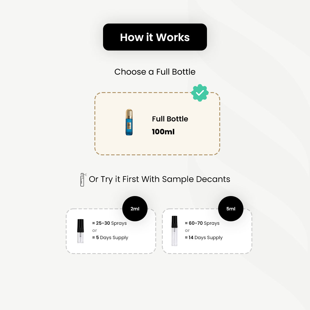 All fragrances listed on our website, are hand curated and purchsed directly from our trusted suppliers in the Middle East. We take authenticity very serious, as it is both illegal and against our mission to share the love of fragrance with a wider audience. Each and every decant is tested and each bottle sold comes with our Authenticity guarantee.
