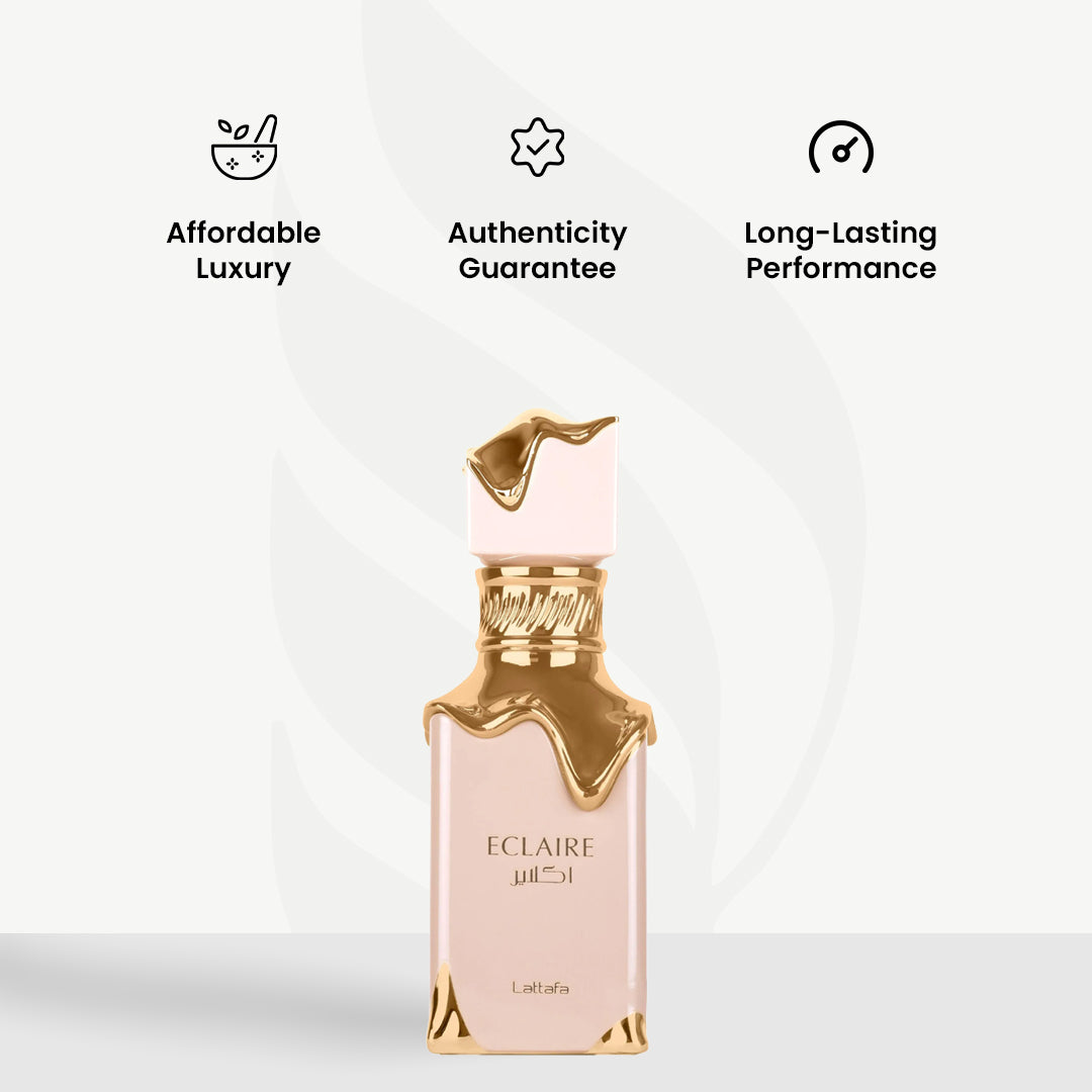 Éclaire by Lattafa is a decadent, luminous fragrance that feels like dessert for the soul. It opens with an irresistible trio of warm caramel, creamy milk, and delicate sugar, instantly enveloping you in a cloud of sweet indulgence.