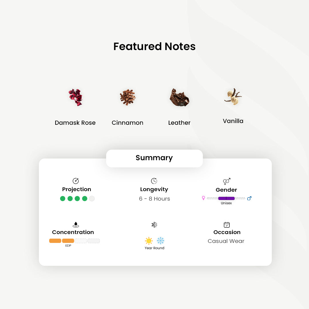 Floral • Spicy • LeatherA scent that dances through the streets of a city alive.