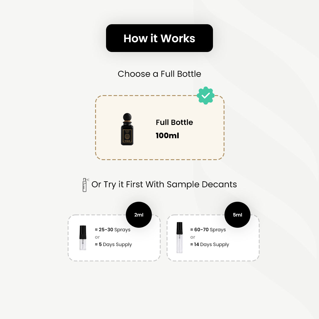 All fragrances listed on our website, are hand curated and purchsed directly from our trusted suppliers in the Middle East. We take authenticity very serious, as it is both illegal and against our mission to share the love of fragrance with a wider audience. Each and every decant is tested and each bottle sold comes with our Authenticity guarantee.